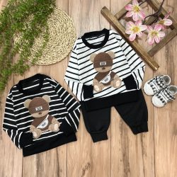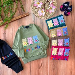 بلوز شلوار دو خط تدی(کرم نسکافه ای)